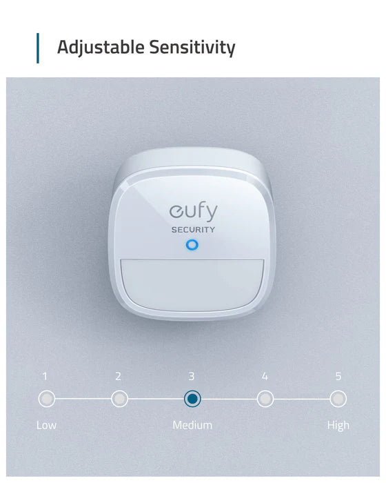 - Tengdu það: Tengist eufy Security HomeBase (ekki innifalið) og allar aðrar eufy öryggis vörur. Einfaldlega paraðu það í gegnum eufy Security appið og ýttu á hnappinn á skynjaranum til að bæta því við kerfið þitt. *Push-tilkynningar.