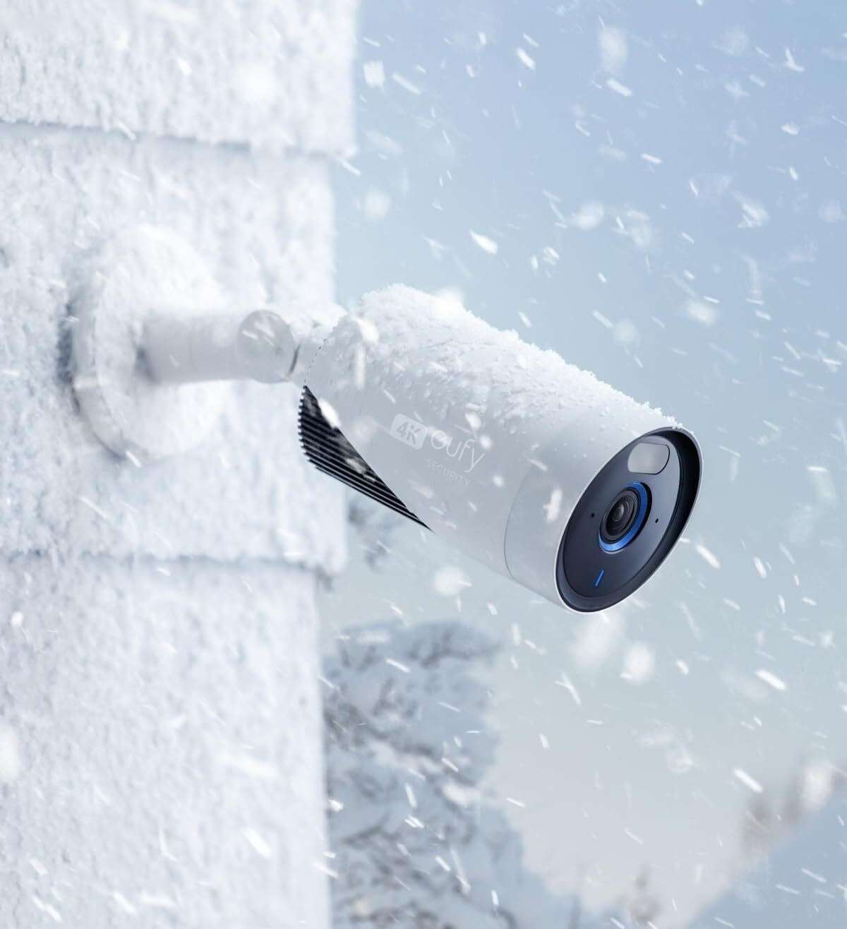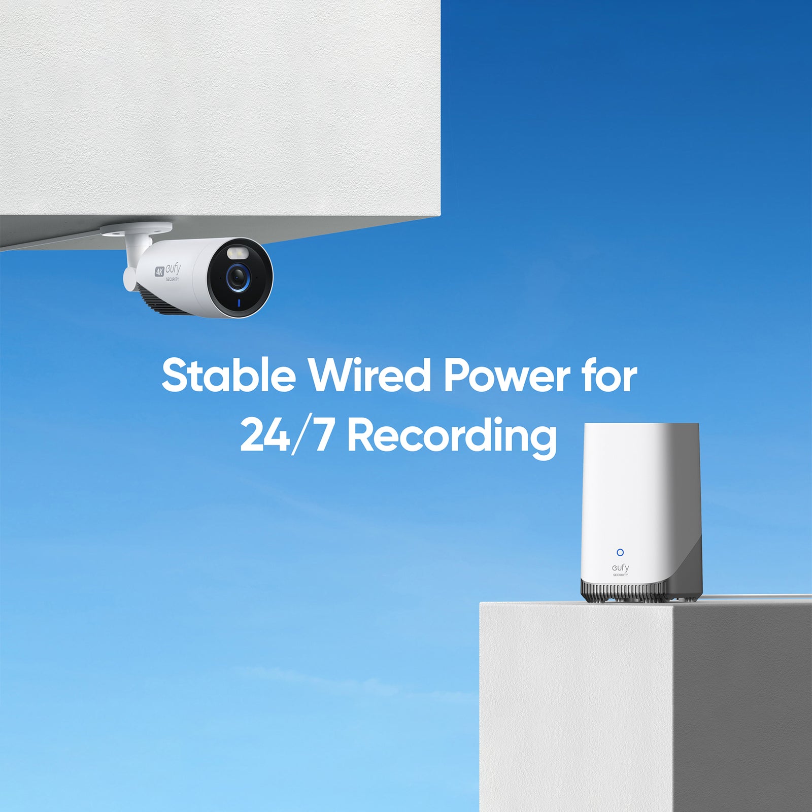Sparaðu með 24/7 öryggismyndefni: Með eufyCam E330 eru gögnin þín vernduð með háþróaðri dulkóðun og þú ert alltaf við stjórnvölinn. Settu upp auka geymsludrif (fylgir ekki með) og stækkaðu geymslurýmið upp í 16 TB, allt án mánaðargjalds. Vinsamlegast athugið að millistykki myndavélarinnar verður að verja gegn rigningu og vatni við uppsetningu utandyra.